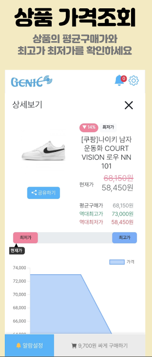 지니알림은 쿠팡의 가격 변동을 실시간으로 추적하여 알려주는 서비스입니다